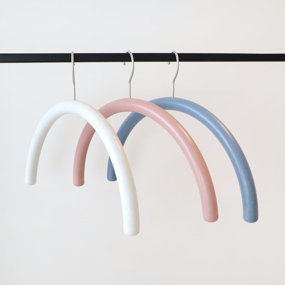 このアーチ状のカタチは見た目が可愛いだけでなく、ニットやオーバーサイズTシャツなど、伸びやすいお洋服に最適な肩に跡がつかない形状で、型くずれ防止効果があります。